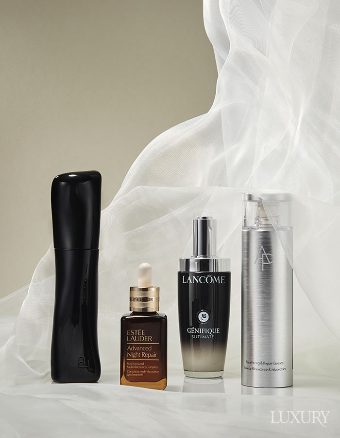 B.A 로션 피부 본연의 힘을 기르는 퍼스트 에센스로 농밀한 포뮬러가 피부에 부드럽게 스며들어 피붓결을 유연하게 정돈한다. 폴라. 어드밴스드 나이트 리페어 싱크로나이즈드 멀티 리커버리 콤플렉스 피부에 최적화된 조합으로 개발한 독보적인 펩타이드 성분을 담아 피부 리듬을 활성화하는 고농축 앰풀. 에스티 로더. 제니피끄 로션 얼티미트 리퀴드 리페어 세럼 인 에센스 리페어와 동시에 노화 징후까지 효과적으로 케어하는 수분 에센스. 민감성 피부도 안심하고 사용할 수 있는 포뮬러가 장점. 랑콤. 리서페이싱 앤 리페어 에센스 각질 제거와 리페어 사이클을 유도해 맑고 균일한 피붓결과 톤을 선사한다. 고농축 리페어 성분이 피부 장벽을 강화하는 에센스. 에이피 뷰티.