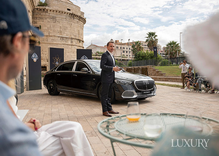 마지막 날, 프랑스로 향한 시 클라우드 스피릿호가 생트로페St. Tropez에 접근하자 돛이 올랐다. 선원들이 로프를 당기자 흰 천이 팽팽해졌고, 갑판에선 짧은 탄성이 터졌다. 이후 몇 시간을 이동하니 육지가 또렷해졌다. 담황색 벽과 종탑이 시야의 중심에 들어왔고, 해안의 보트들은 일정한 궤적을 그렸다. 하선 후 차량으로 약 20분, 종착지인 팜플론 해변의 ‘바가텔 비치 클럽Bagatelle Beach Club’에 닿았다. 흰 천막과 나무 덱, 해변에 길게 늘어선 파라솔이 한낮의 열기를 반사하고 있었다. 이곳은 휴식처를 넘어 마이바흐 여정의 피날레를 알리는 무대였다. 음악과 웃음, 바다의 온도가 한데 섞이고 금빛 바다의 물결을 타고 하루가 흘러가면서 전체 일정이 마무리됐다.