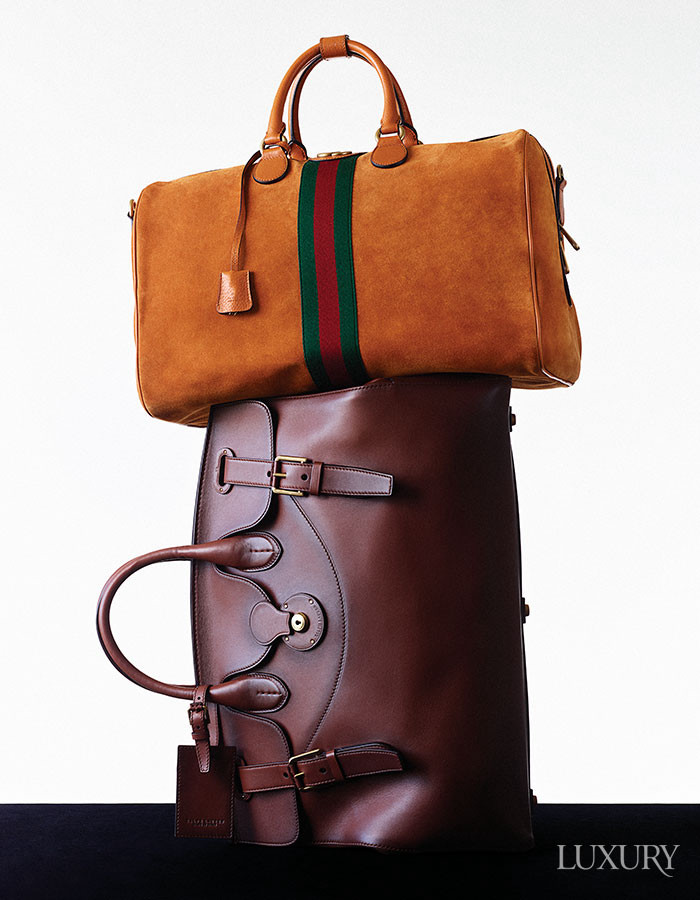 오렌지 스웨이드 소재 더플백은 구찌. 카프스킨 소재의 ‘쿠퍼’ 백은 랄프 로렌 퍼플 라벨. 레오퍼드 패턴 프레임의 선글라스와 포니 헤어 가죽 소재 미니 파우치 모두 생 로랑 by 안토니 바카렐로. 로고 시그너처 디테일로 포인트를 준 로퍼는 발렌티노 가라바니.