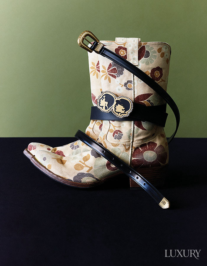 웨스턴 무드의 V 로고 시그너처 벨트는 발렌티노 가라바니.