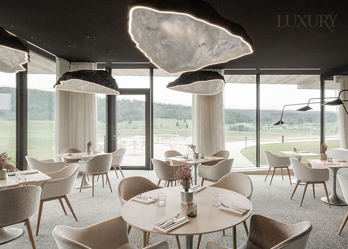 미쉐린 3스타 셰프 에마뉘엘 르노가 위탁 운영하는 르 고강 레스토랑은 초원과 주방을 투명하게 공개한다.