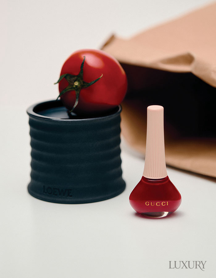로에베 퍼퓸. 쨍한 토마토 레드 빛깔의 네일 폴리시, ‘베르니 아 옹글 골디 레드 25’는