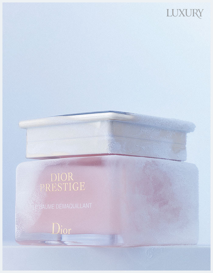 디올 프레스티지 르 봄 데마끼앙 로즈 왁스가 오일로 바뀌며 메이크업과 노폐물을 부드럽게 제거하는 클렌징 밤. 디올 뷰티.