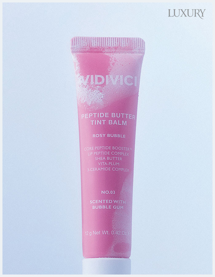 펩타이드 버터 틴트 밤 #03 로지 버블 멜팅 펩타이드 콤플렉스가 입술에 보습과 탄력, 윤기를 개선하고 맑은 보습 광을 더한다. 비디비치.