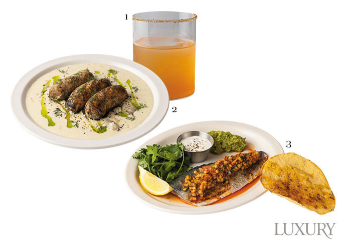 1 메즈칼과 발효한 파프리카, 테파체 등을 넣어 감칠맛이 좋은 칵테일 ‘데이 오브 더 데드’. 2 직접 손질한 연어와 케이퍼 베리, 딜을 넣어 만든 ‘연어 소시지’. 3 초절임한 고등어를 이색적으로 풀어낸 ‘고등어 타코’.