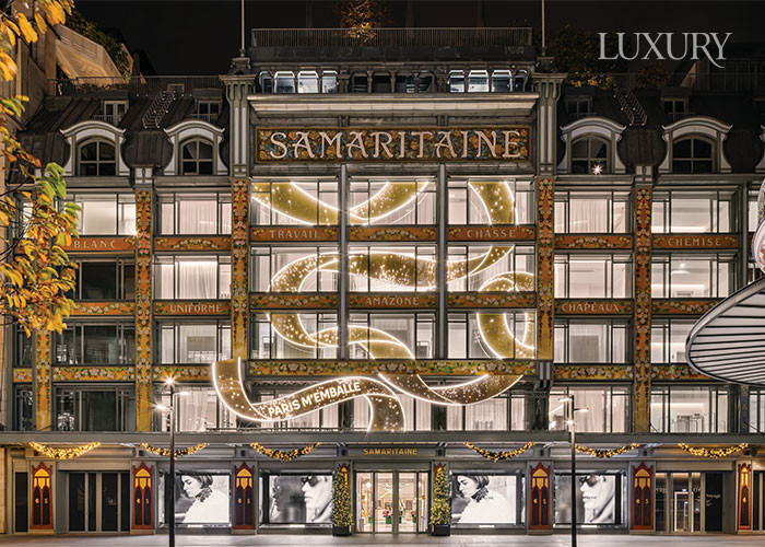 아티스트 엘사 톰코비악Elsa Tomkowiak과 협업해 리본과 공작새를 주제로 백화점 곳곳을 휘감은 유쾌한 장식을 연출한 사마리텐의 장식.