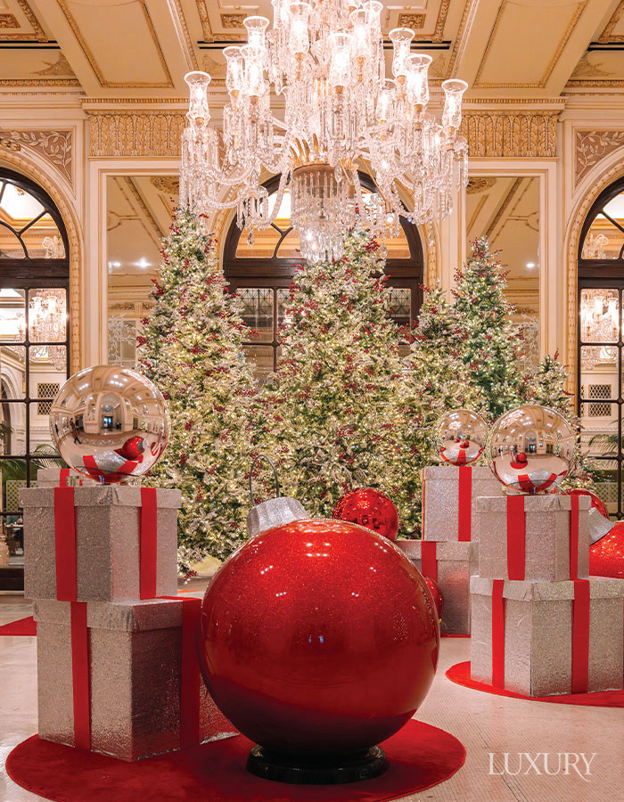 공간 곳곳에 레드 컬러 오너먼트와 실버 기프트 박스를 배치해 ‘크리스마스 파크’에 들어선 듯 즐거운 겨울 장면을 연출한 더 플라자 뉴욕.