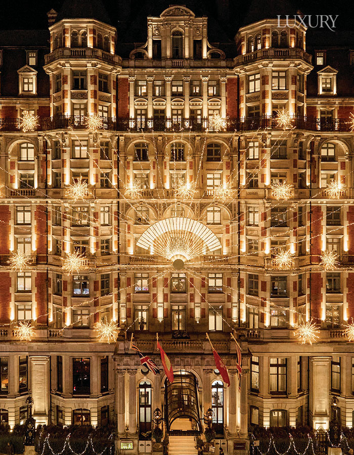 국내외 주요 백화점들은 특히 넓은 공간을 하나의 이야기로 엮어내는 데 집중하는데, 더현대는 올해도 ‘아틀리에’라는 테마를 통해 자신들만의 세계관을 확장했다. 파리의 봉 마르셰가 알자스 전통 마켓을 모티브로 샬레 마을을 세우고, 사마리텐이 아티스트와 협업해 백화점 전체를 리본 퍼레이드처럼 연출하는 등 파사드에서 윈도, 아트 인스톨레이션에 이르기까지 다양한 요소가 연말의 몰입감을 만들어낸다. 한편 럭셔리 호텔의 연출은 이러한 도시적 스토리텔링과 결을 같이하면서도 한층 더 내밀한 감성을 지향한다. 백화점이 ‘대규모 서사’를 펼친다면, 호텔은 그 서사 속에서 머물고 싶은 장면을 조용히 완성하는 느낌에 가깝다. 만다린 오리엔탈 런던은 외관의 상징적 디테일을 조명으로 담아내 도시의 빛과 조응하고, 더 플라자 뉴욕과 더 페닌슐라 뉴욕은 로비의 샹들리에·계단·아치 구조와 트리를 조화롭게 배치해 누구나 한 번쯤 사진으로 남기고 싶은 순간을 만든다. 아만 계열의 지역성과 전통 소재, 포시즌스의 자연 소재와 지속가능성처럼, 호텔들은 브랜드 철학을 트리에 집약하는 방식으로 자신만의 ‘정서’를 세밀하게 구축한다. 이렇게 백화점이 연출해낸 도시적 장면 위에서 호텔은 또 다른 층위의 감성을 더하며, 두 공간이 함께 연말 도시의 기억을 완성하는 흐름을 형성한다.