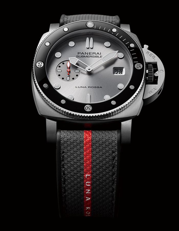 항해 분야의 탁월함과 혁신을 상징하는 아메리카 컵과 함께 해온 파네라이의 항해 여정은 2017년으로 거슬러 올라간다. 엘리트 세일링 종목에 진출한 파네라이는 그 후 권위 있는 요트 경기의 공식 파트너, 오라클 팀 USA와 소프트뱅크 팀 재팬의 후원사 등으로 항해 분야를 탐험해왔다. 그리고 2019년 마침내 루나 로사 프라다 피렐리 팀의 공식 스폰서로 임명됐다. 해군의 시계로 시작한 역사적 배경을 바탕으로 바다를 정복하려는 이들의 시계로 거듭난 파네라이는 이제 ‘루나 로사 AC75’ 요트를 시계 디자인으로 재해석하기에 이르렀다. ‘섭머저블 쿼란타콰트로 루나 로사 PAM01681’ 워치는 그야말로 손목 위에 요트를 그대로 옮겼다 해도 부족함이 없으며 이탈리아 디자인과 스위스 기술의 집합체라 할 수 있다.