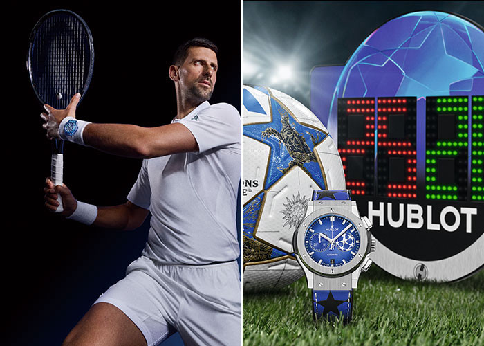 (왼쪽부터) 노박 조코비치의 흔적을 담은 ‘빅뱅 유니코 노박 조코비치’ 워치. UEFA 챔피언스 리그의 공식 타임키퍼인 위블로.