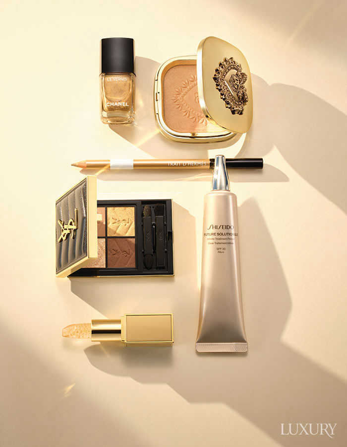 메이크업에서 골드는 피부 표현의 완성도를 좌우한다. 미세한 반사 입자가 보습 성분과 함께 피부를 매끄럽게 정돈하고, 빛을 고르게 퍼뜨려 메이크업의 결과를 한 단계 끌어올린다. 골드 메이크업의 흐름은 2026 S/S 런웨이에도 등장한다. 에르메스는 눈머리와 언더라인에만, 울라 존슨은 속눈썹까지 골드로 물들여 세련된 아이 메이크업을 완성했다. 샤넬은 베이지 브라운 치크 위에 골드 하이라이터를 얹어 얼굴에 따뜻하고 고급스러운 빛을 더했다. 이처럼 2026년의 골드는 데일리한 따뜻함과 대담한 화려함을 넘나드는 히든 컬러다.