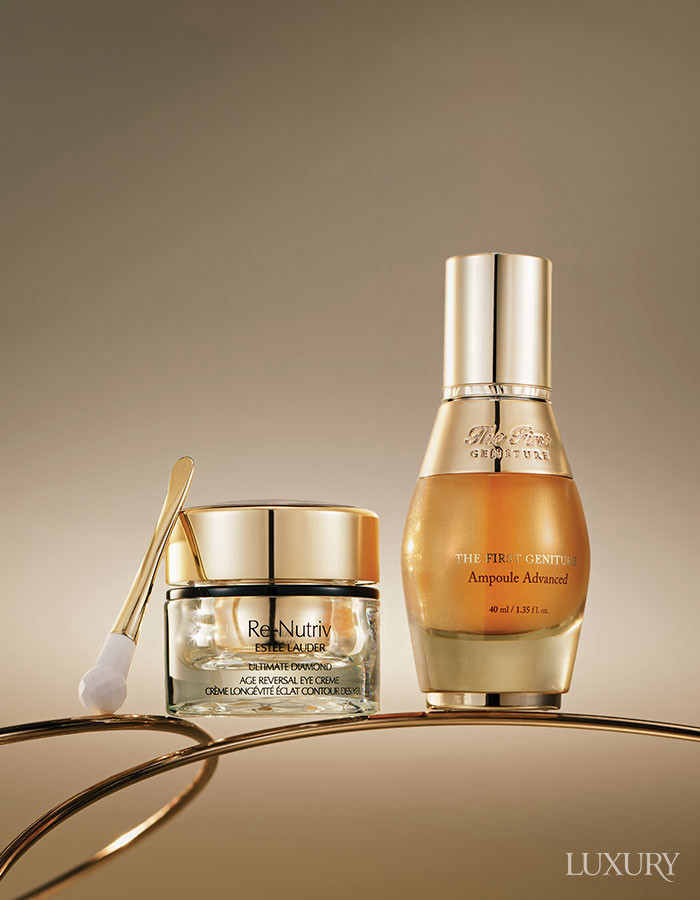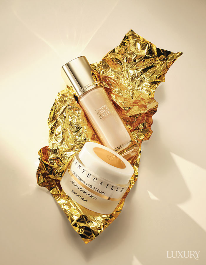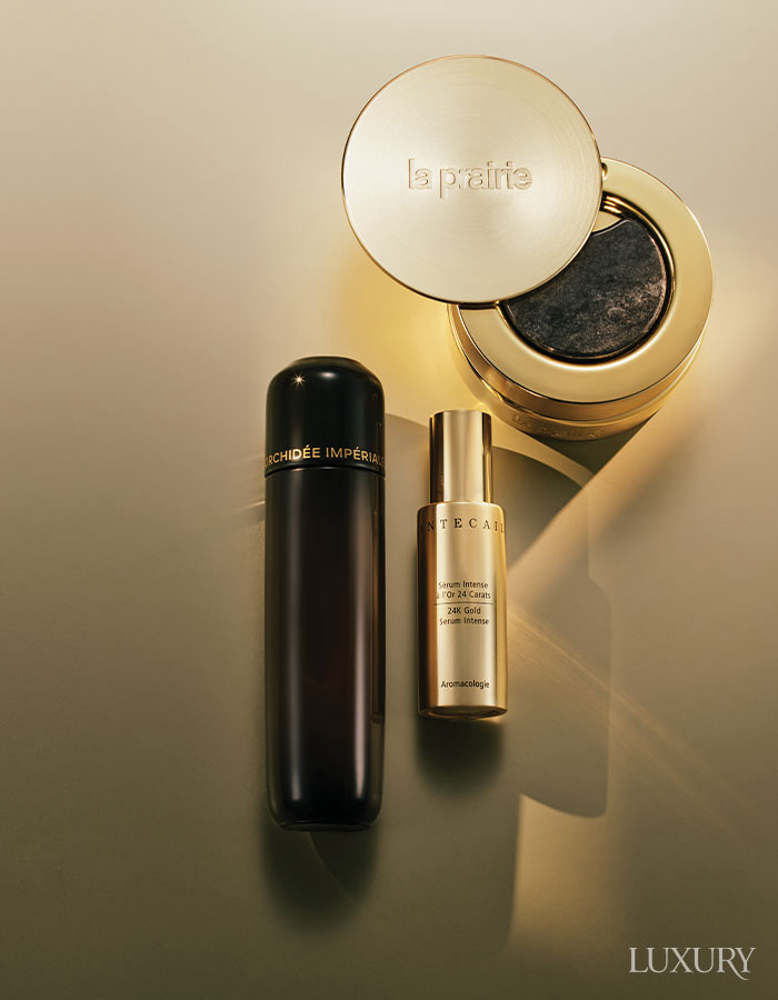 오키드 임페리얼 블랙 로션 희귀 오키드와 골드 성분이 피붓결을 정돈하고, 나노 포뮬러가 피부 깊이 침투해 다음 단계의 흡수를 높여준다. 겔랑. 24K 골드 세럼 인텐스 24K 골드가 피부 컨디션을 빠르게 끌어올리는 안티에이징 세럼. 샹테카이. 퓨어 골드 레디언스 녹터널 밤 순수 골드 성분이 밤사이 피부 재생 리듬을 활성화해 아침 피부에 빛을 더한다. 라프레리.