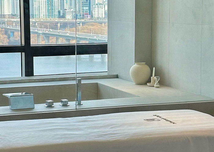 한강을 바라보며 테라피를 즐길 수 있는 ‘퓨리에 더 리버뷰’는 하이엔드 스파와 에스테틱의 전문성을 기반으로 한다. 이곳에서는 모공에 축적된 중금속·미세먼지·피부 독소를 99.9% 순금의 이온 교환과 온열 에너지로 정화하는 ‘럭셔리 아우름 Aurum 리제네레이션’ 프로그램을 제공한다. 골드를 통해 노화를 유발하는 유해 물질을 배출하고 피부 재생 사이클을 안정화한다. 여기에 퓨리에만의 수기 윤곽 테크닉이 더해져 개개인의 얼굴 구조에 맞는 맞춤형 윤곽 디자인을 완성한다.