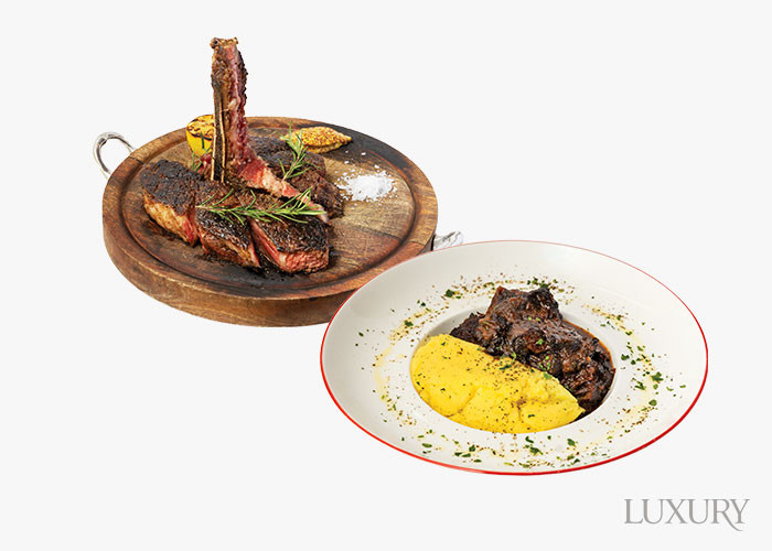 (왼쪽부터) 피렌체 현지 방식으로 구워낸 ‘비스테카 알라 피오렌티나’. 이탈리아 키안티 와인과 흑후추로 맛을 낸 쇠고기찜 ‘페포소’.