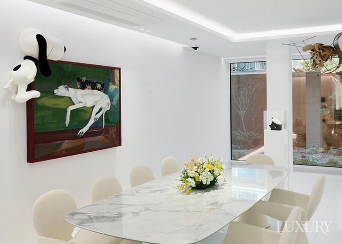 알렉스 다 코르테의 신작으로 꾸민 다이닝 공간. 작가의 해석을 곁들여 스누피를 함께 형상화했다.