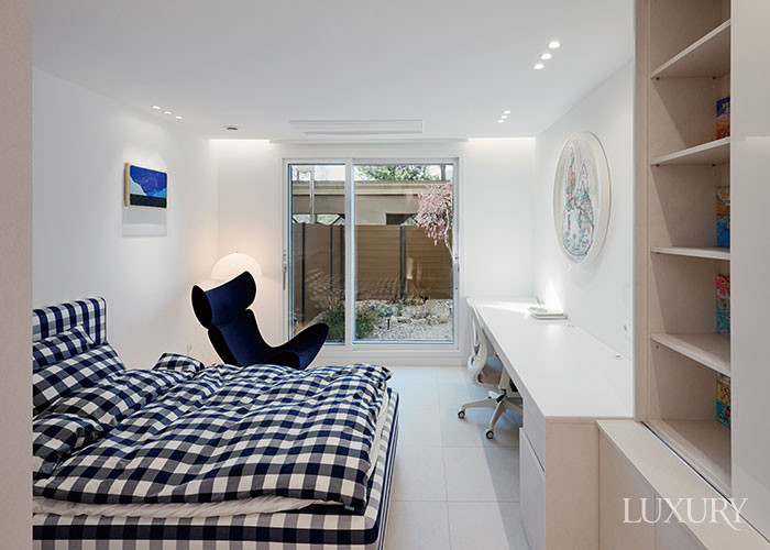 레노베이션을 진행하며 가장 크게 변화한 부분은 무엇인가요? 먼저 기존 구조의 벽체를 정리해 시선을 열고, 공간 간의 연결성을 높였습니다. 빛이 머무는 방식과 사람의 동선을 세심하게 조율하고, 각 방에서 바라보는 조경 역시 중요하게 다뤘어요. 통창을 통해 보이는 단풍나무와 소나무, 야생화의 배치가 하나의 풍경화처럼 느껴지도록 구성했죠. 창원에 위치한 ‘예가컴퍼니’ 김신종 대표님과 박소희 실장님, ‘휴가조경’의 최규진 대표님께서 힘을 써주셨습니다. 가구 선택 기준은 무엇이었나요? 거실은 마치 전시 공간 같은 화이트 큐브에 조형적인 소파가 중심을 잡도록 했습니다. 가 구를 단순한 기능물이 아니라 하나의 조형 요소로 바라본 것입니다. 거실에는 에드라의 ‘온더락’ 소파를 배치했는데, 앉는 방향에 따라 정원과 예술 작품을 모두 감상할 수 있도록 고려했습니다. 또 뱅앤올룹슨의 ‘베오비전 하모니’를 기술과 예술이 결합된 하나의 오브제라는 생각으로 선택했습니다. 침대는 해스텐스의 ‘2000T’ 모델 가운데 공간과 가장 잘 어울리는 색감을 골랐고요. 전반적으로 가구는 형태가 분명하되 공간을 압도하지 않고, 각 브랜드가 지닌 기술력과 작품성, 전문성이 균형을 이루는 제품들로 신중하게 선택했습니다.