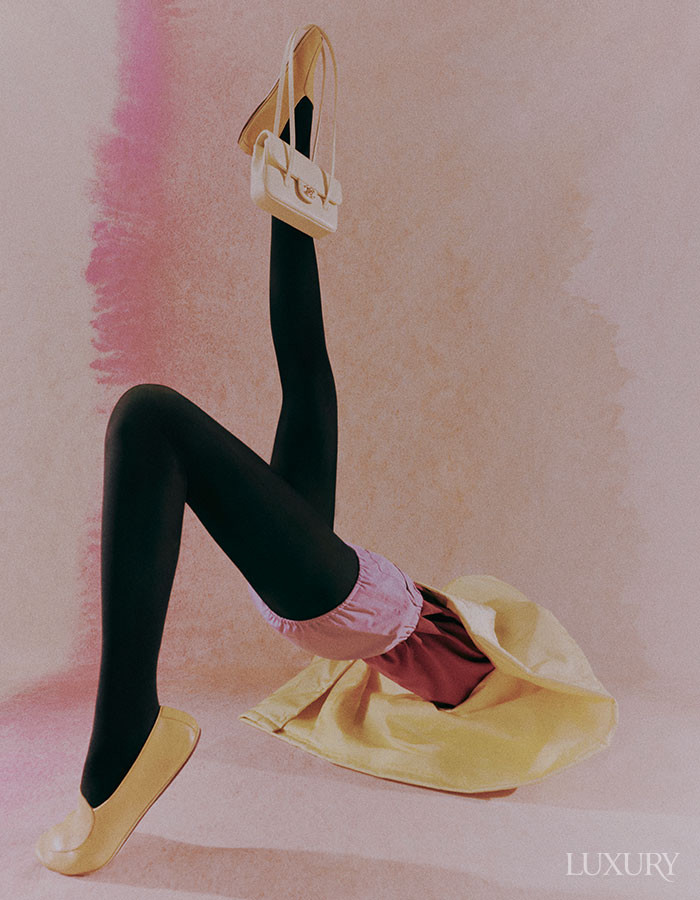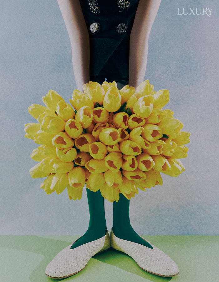 눈에 띄는 ‘로사 발레리나’ 슈즈는 보테가 베네타.