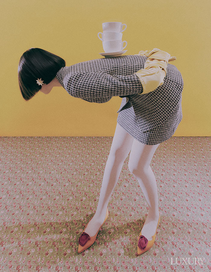 하운즈투스 체크 패턴 재킷과 플레어 팬츠 모두 발렌티노.