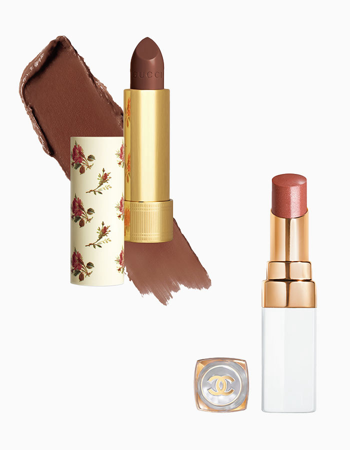 따뜻한 레이디언트 브라운 컬러의 ‘루즈 아 레브르 브왈 #134 클라라 체스넛’. 반투명한 피니시가 입술 본연의 색과 어우러져 자연스러운 아름다움을 살려준다. 080-850-0708