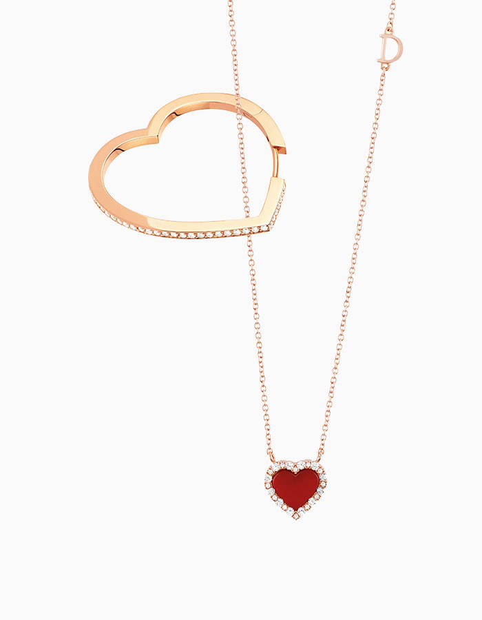 벨 에포크 시대의 풍요로운 미학에 감동받아 제작한 ‘벨 에포크’ 네크리스. 영화 프레임 같은 핑크 골드 위로 다이아몬드와 하트 셰이프 카닐리언을 장식해 눈부신 광채를 완성했다. 6204-1924