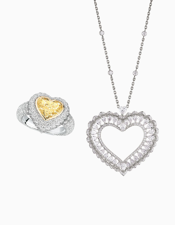 나미비아의 광활한 풍경과 야생의 색채를 담은 ‘아코마’ 솔리테어 링. 하트 셰이프 옐로 다이아몬드 주위로 화이트 다이아몬드를 촘촘히 세팅해 찬란한 빛을 발산한다. 3213-2224