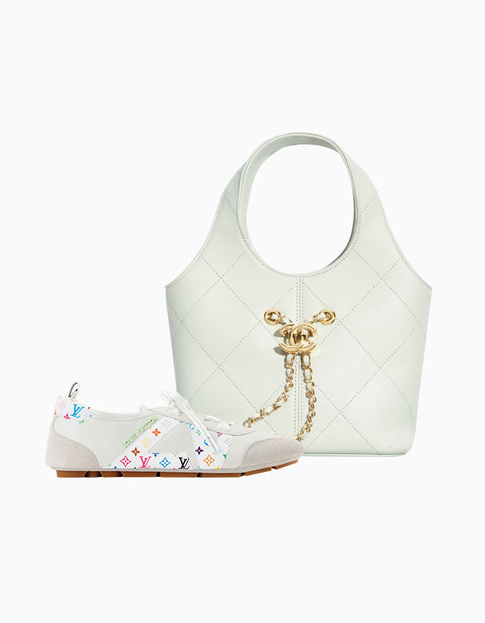 멀티컬러 모노그램 로고 장식으로 화사한 포인트를 준 화이트 스니커즈. 3432-1854