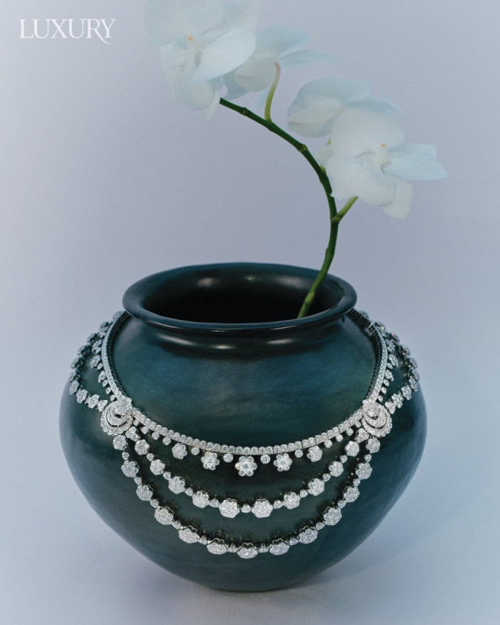 1920년부터 선보여온 ‘플로레뜨’ 모티프에서 영감받은 ‘스노우플레이크’ 컬렉션의 ‘스노우플레이크 트랜스포머블’ 네크리스는 반클리프 아펠.