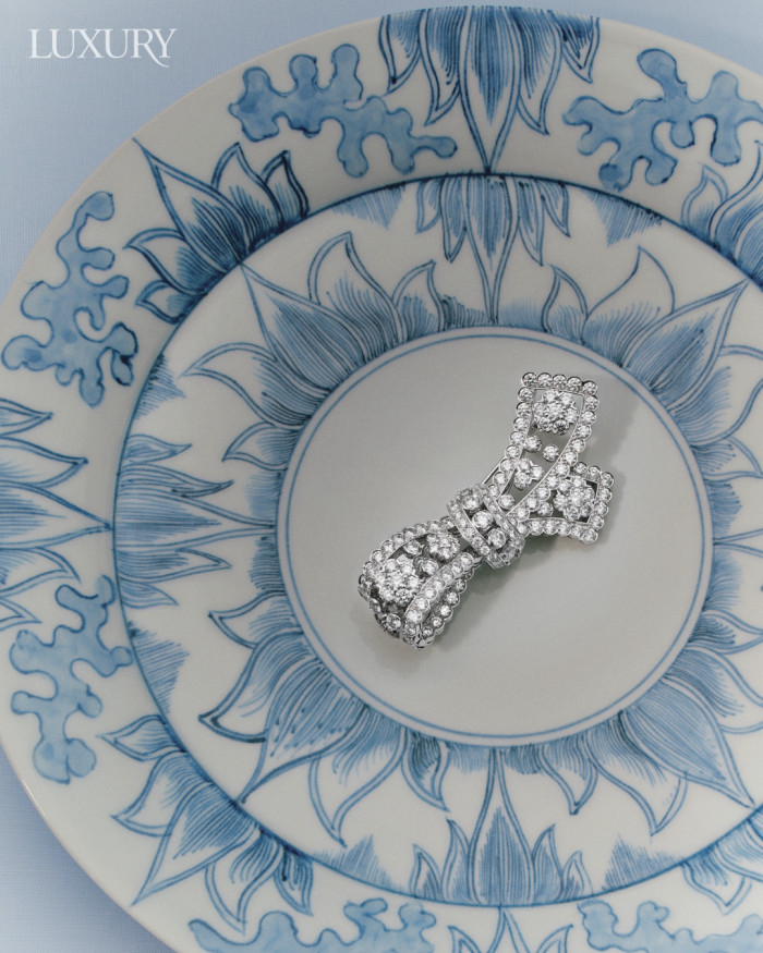 컬렉션 특유의 V-프롱 기법으로 다이아몬드의 광채를 극대화한 ‘스노우플레이크 너 클립’은 반클리프 아펠.