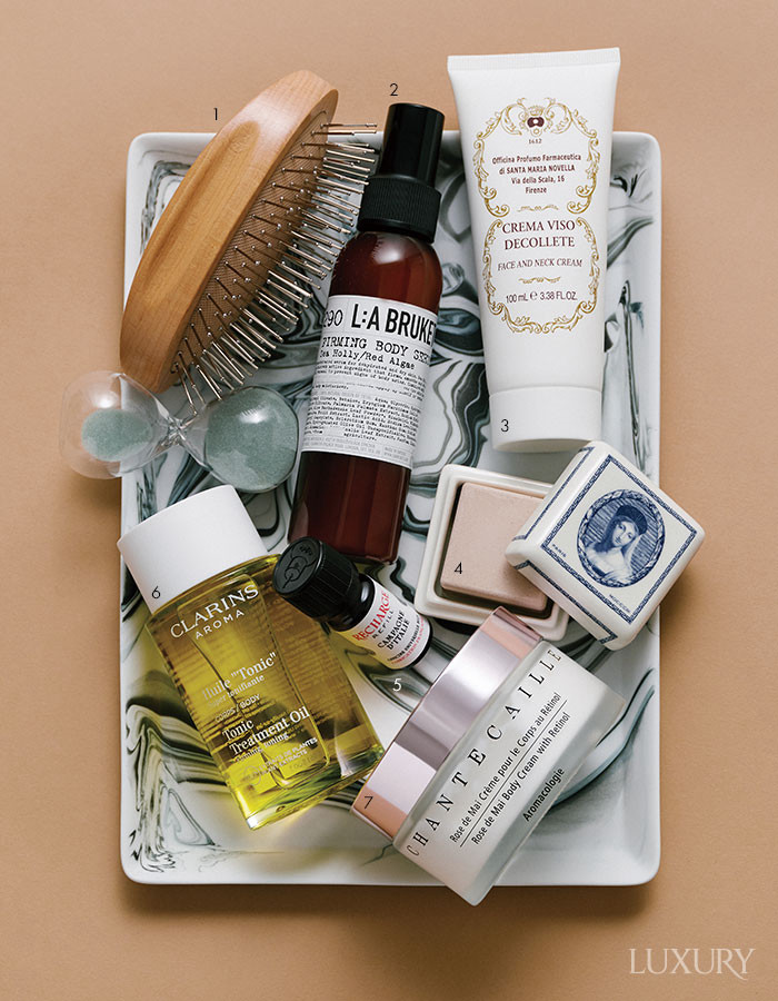 우드 마사지 브러쉬 느티나무와 연나무로 만든 마사지 브러시. 오일을 발라 뭉친 부분을 마사지하면 근육이 풀리고 노폐물 배출을 도와 매끈한 보디라인을 가꾸는 데 도움을 준다. 벨레다.
