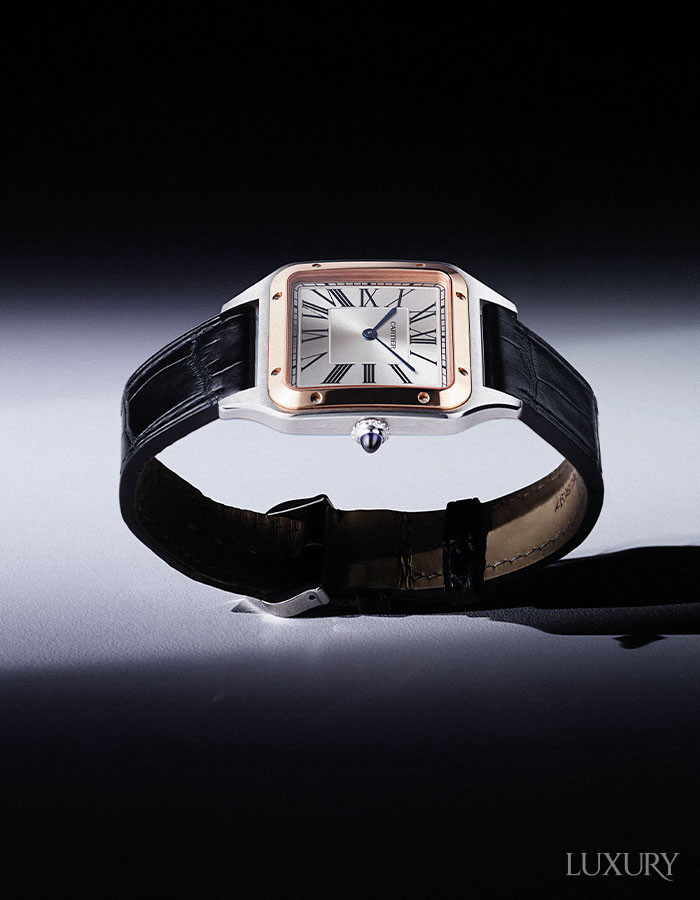 오리지널 디자인의 정체성을 이어받은 ‘산토스 드 까르띠에’ 컬렉션의 ‘산토스 뒤몽’ 엑스트라 라지 워치. CARTIER.