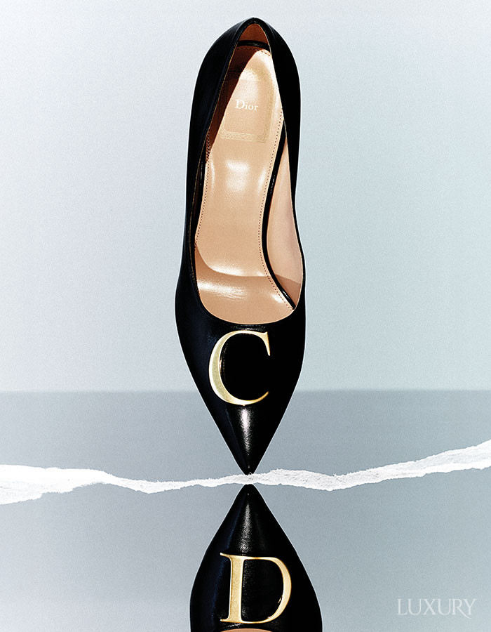 착용 후 두 발을 모으면 CD 로고가 완성되는 블랙 램스킨 ‘디올 이니셜’ 펌프스 DIOR.