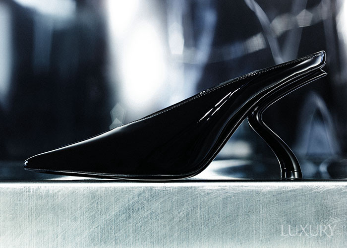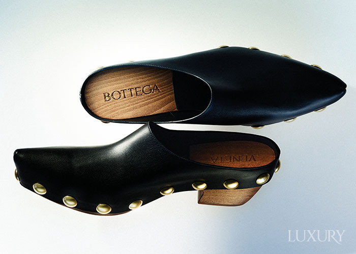 곤돌라 셰이프의 커브드 실루엣에 옆면 디테일을 가미한 샤이니 내추럴 카프스킨 ‘곤돌라’ 클로그 BOTTEGA VENETA.