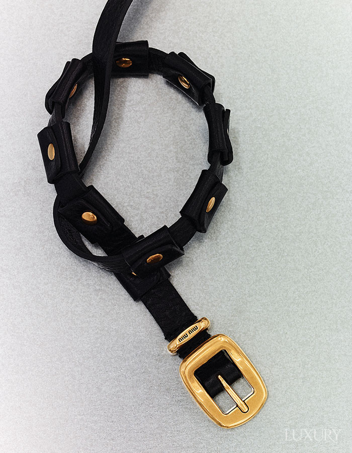 부드러운 카프스킨의 버클 레더 브레이슬릿 MIU MIU.